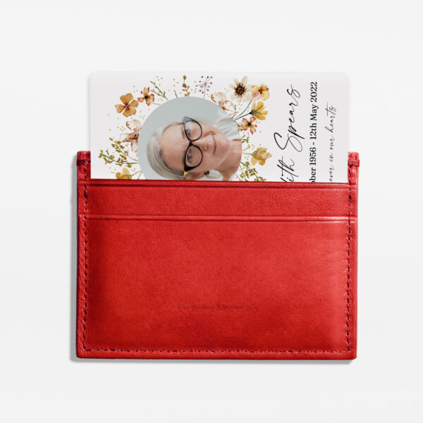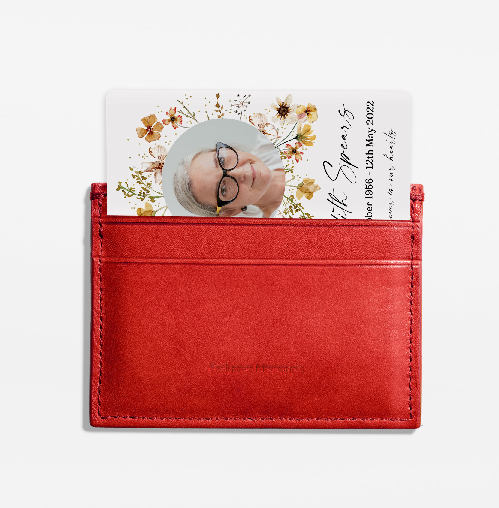 A high quality plastic card just like a credit card. Keep the memory of your loved one close to hand for years to come in your purse or wallet.