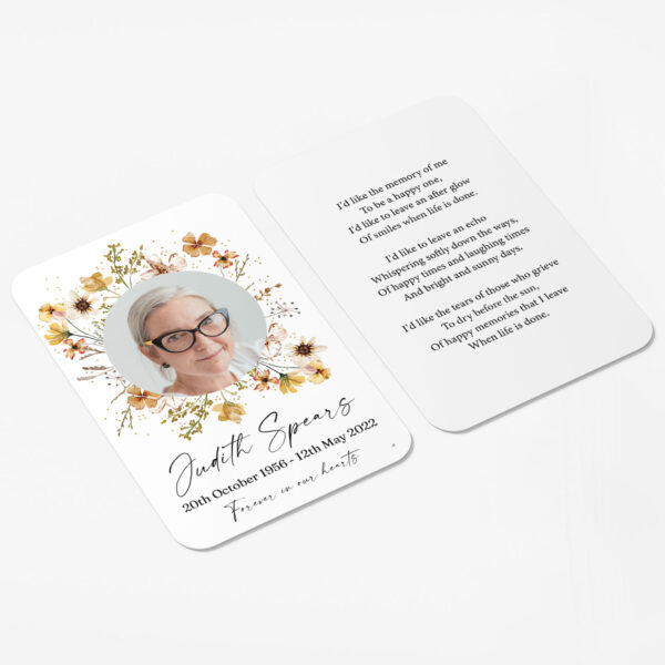 Beautiful and fitting plastic memorial keepsake card for people to remember loved ones.